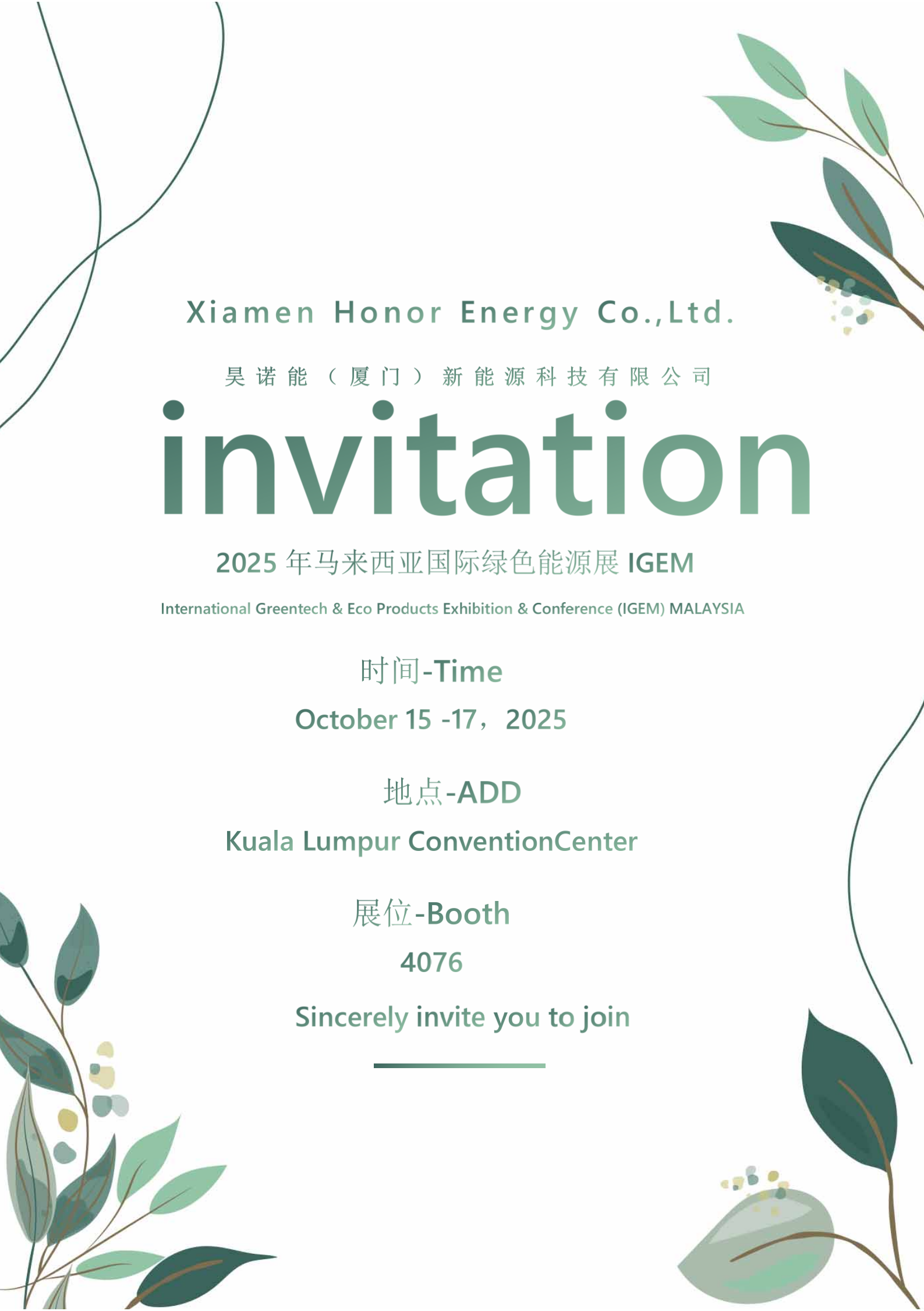 Myjsou potěšeniabychom vám oznámili naše oficiální pozvání na mezinárodní výstavu zelené energie v Malajsii (IGEM) 2025.