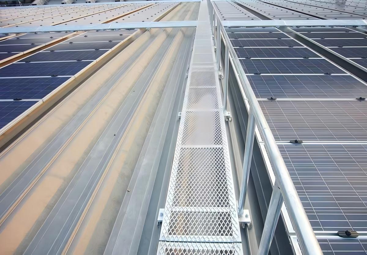 Solární chodník je extrémně běžně používaný solární komponent, který se obvykle instaluje pro usnadnění lepší údržby solárního systému. Také distribuuje zatížení přes vyhrazené chodníky, aby se zabránilo poškození vodotěsné vrstvy nebo netěsnostem střechy způsobeným častým pohybem personálu.